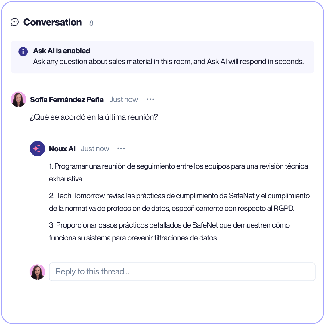 Ask AI is a real-time Q&A tool in your digital salesroom, powered by AI. It automatically learns from your salesroom content and uses that data to answer customer questions at any time of day.